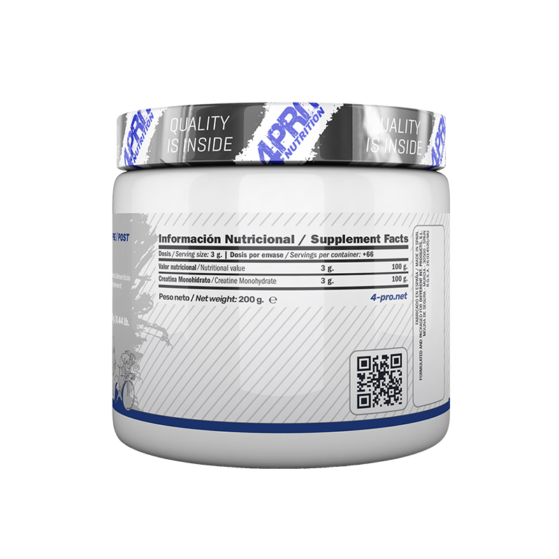 Creamax 200 Grms de 4-PRO es un suplemento de monohidrato de creatina. La creatina es un suplemento ampliamente conocido y utilizado. Su eficacia ha sido confirmada por numerosos estudios científicos.